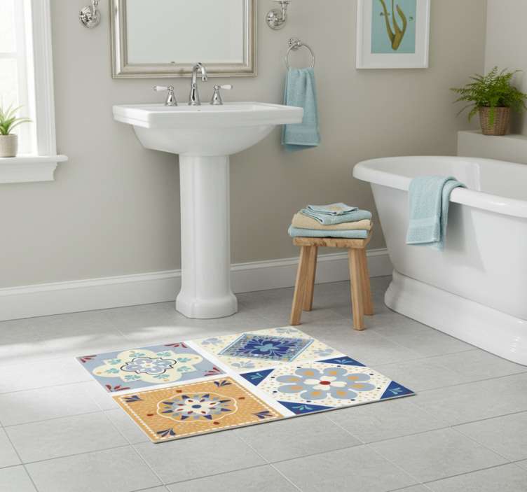 Reference: R21353Transform your bathroom into a vibrant oasis with our Colorful palette bathroom vinyl rug. Featuring a lively array of hues and captivating designs, this rug not only enhances your space but also provides a warm and inviting atmosphere. Crafted with remarkable attention to detail, its striking color palette and modern aesthetics make it a perfect addition to any bathroom decor!