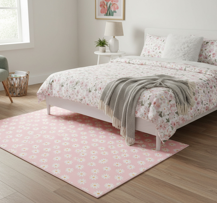 The Daisy flower pattern flower vinyl rug is perfect for enhancing your interior decor! Its playful floral design brings a touch of nature indoors, creating a welcoming atmosphere for family and friends. Whether you place it in your living room, bedroom, or kitchen, this flower vinyl rug effortlessly elevates the style of your space, making it feel fresh and inviting. Enjoy the beauty and charm it adds to your home!