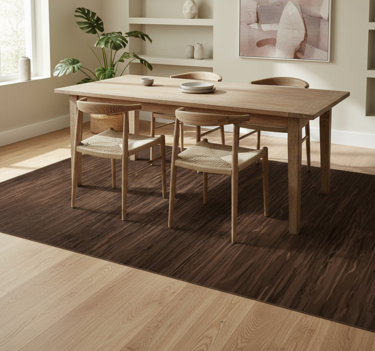 Reference: R21205Transform your space with our stunning Dining room vinyl rug in dark wood effect! This beautifully designed rug features a rich dark wood texture that adds warmth and sophistication to your dining area. With its elegant appearance, it effortlessly complements a variety of decor styles, making it an ideal choice for anyone looking to elevate their home aesthetics.