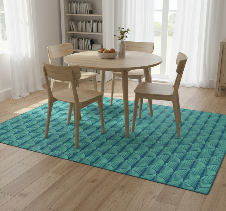 The Dining room vinyl rug in green blue dining room vinyl rug is perfect for those seeking to elevate their home decor! Its unique color palette and stylish design bring life to any dining area, creating an inviting atmosphere for family gatherings and entertaining friends. Imagine hosting dinner parties where everyone admires your exquisite taste! This rug not only complements your decor but also serves as a conversation starter.
