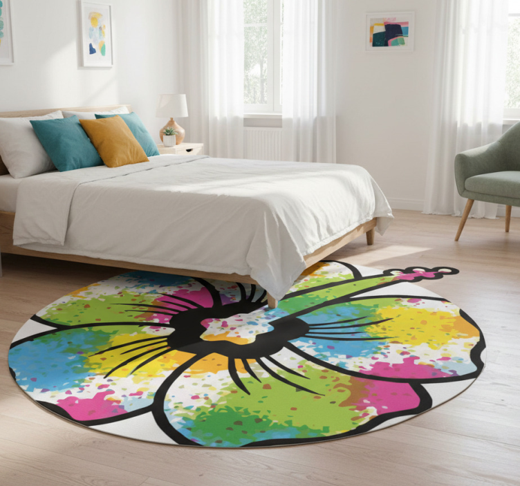 The Flower vinyl rug colorful hibiscus blossom flower vinyl rug is a must-have for anyone looking to elevate their home decor! This stunning piece not only serves as a functional item but also as a striking focal point in your space. With its vibrant colors and artistic design, it effortlessly brightens up any room, making it a perfect choice for living rooms, bedrooms, or even playrooms. Let this beautiful rug inspire your creativity and transform your home into a tropical oasis!