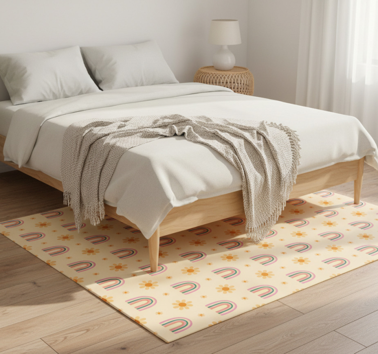 Flower vinyl rug floral and rainbow design
