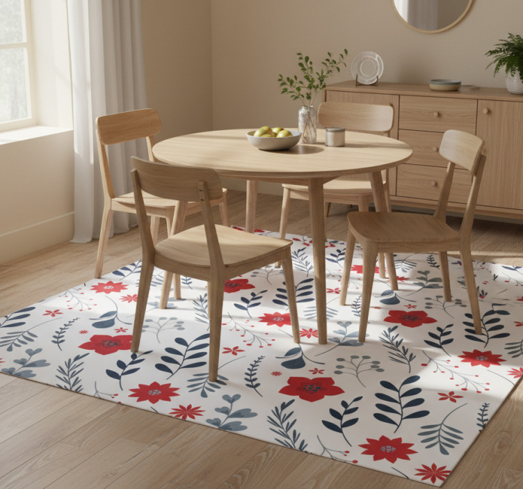 The Flower vinyl rug with white and red floral design flower vinyl rug is an ideal choice for enhancing your interior decor! With its lively floral patterns, it brings a cheerful and inviting atmosphere to any room. Whether you’re decorating a cozy living space or a vibrant play area, this rug is sure to make a statement and inspire creativity!