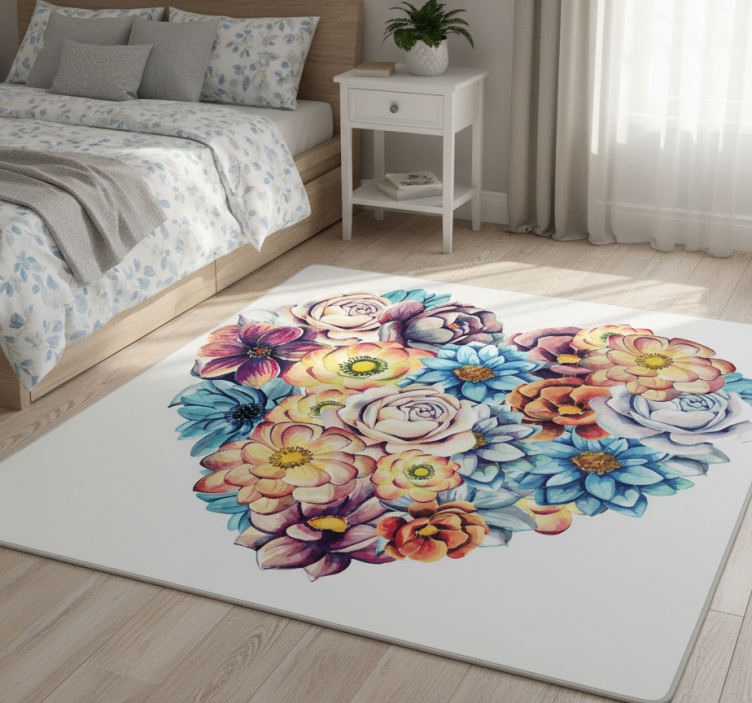 Reference: R21500Transform your space with the enchanting Flower vinyl rug heart floral design, a stunning piece that beautifully combines vibrant colors and intricate floral patterns. This exquisite flower vinyl rug adds a touch of elegance and warmth to any room, making it a perfect choice for those who appreciate artful decor. With its easy-to-clean surface, anti-slip backing, and protective qualities, this rug is not just visually striking but also practical for everyday use!