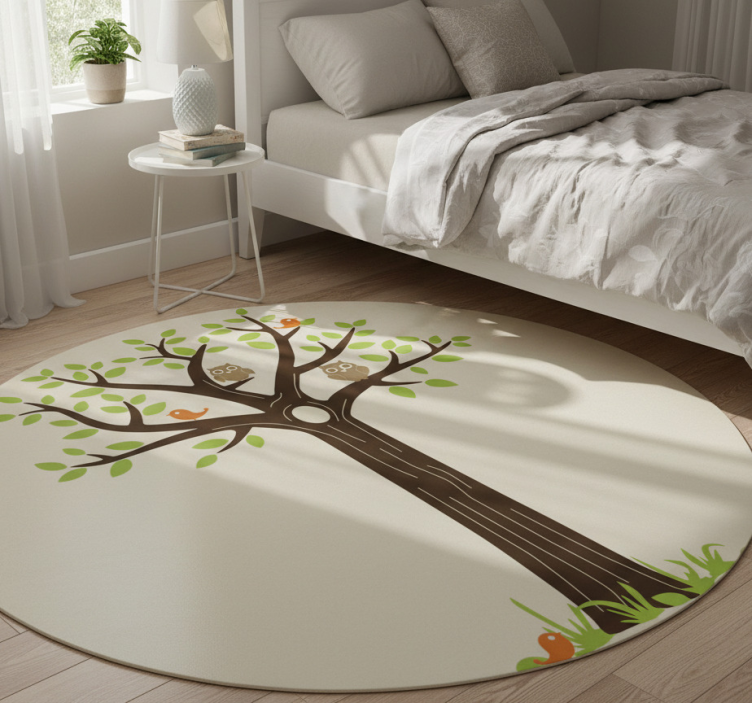 Flower vinyl rug with owls and trees design