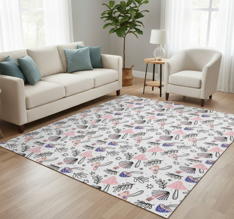 The Flower vinyl rug with classic mushrooms and flowers is the perfect choice for those looking to elevate their home decor. Imagine walking into a room adorned with this exquisite flower vinyl rug, instantly brightening the atmosphere and sparking joy. Not only does it serve as a stylish focal point, but it also offers a cozy and inviting feel that makes your home warm and welcoming!