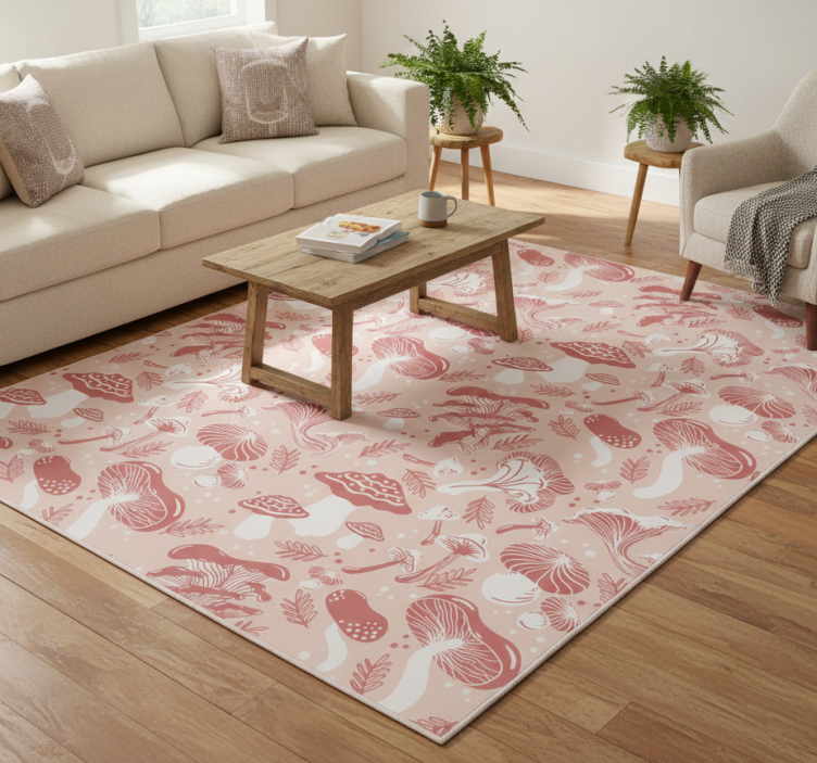 Flower vinyl rug with forest mushrooms on beige