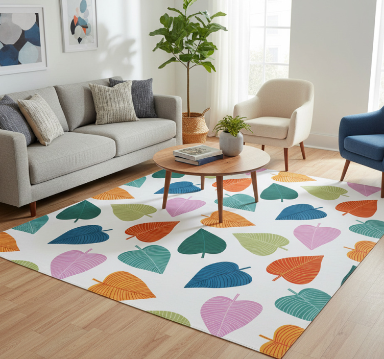 Flower vinyl rug in vibrant colorful leaves