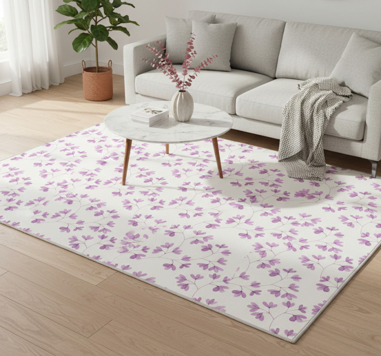 Flower vinyl rug with pink leaf design