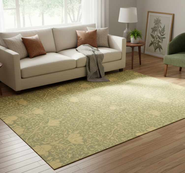 Flower vinyl rug with subtle gold and green pattern