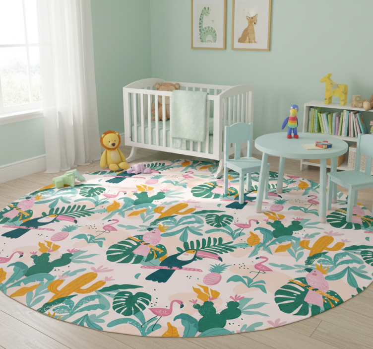 Reference: R20060Transform your space with the vibrant charm of our Tropical birds and leaves animal vinyl rug! This stunning design features a lively arrangement of tropical birds and lush leaves, bringing a touch of nature into your home. The eye-catching colors and intricate details create a visually appealing atmosphere that not only enhances your decor but also reflects your unique style.