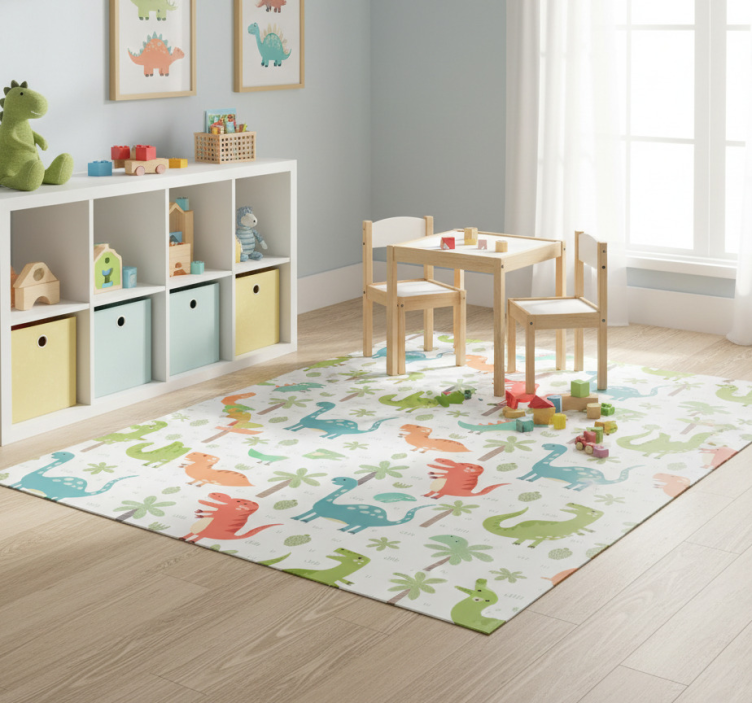 Happy dinosaur animal vinyl rug