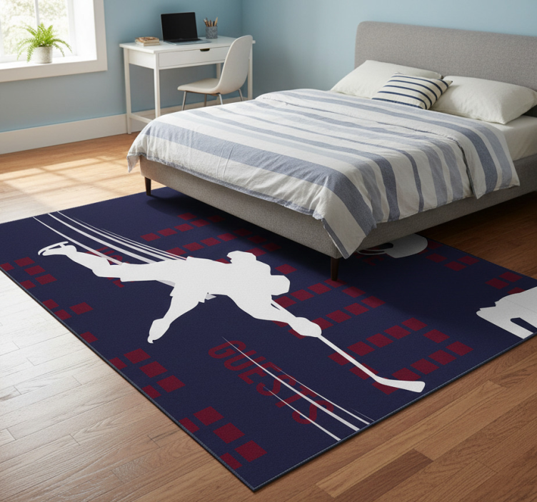 Hockey player bedroom vinyl rug