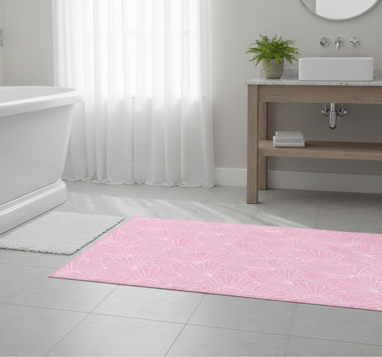 Reference: R23306Transform your bathroom into a whimsical paradise with the Kawaii style pink shells bathroom vinyl rug! This delightful rug features adorable pink shells that add a splash of charm and playfulness to your space. With its vibrant colors and captivating design, this vinyl rug not only enhances your decor but also brings a sense of joy and tranquility to your daily routine. Its easy-to-clean surface, anti-slip backing, and scratch resistant material ensure that it remains both functional and stunning!