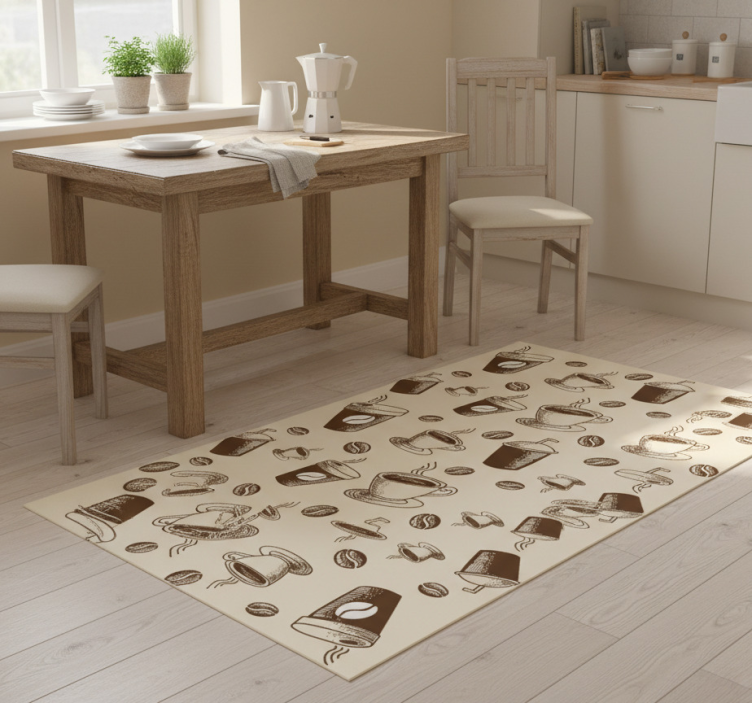 Maintaining the beauty of your Kitchen vinyl rug with a great coffee mug pattern kitchen vinyl rug is easy! Simply wipe it down with a damp cloth or mop to keep it looking fresh and vibrant. Regular cleaning ensures that your rug remains a stunning focal point in your kitchen, ready to impress!