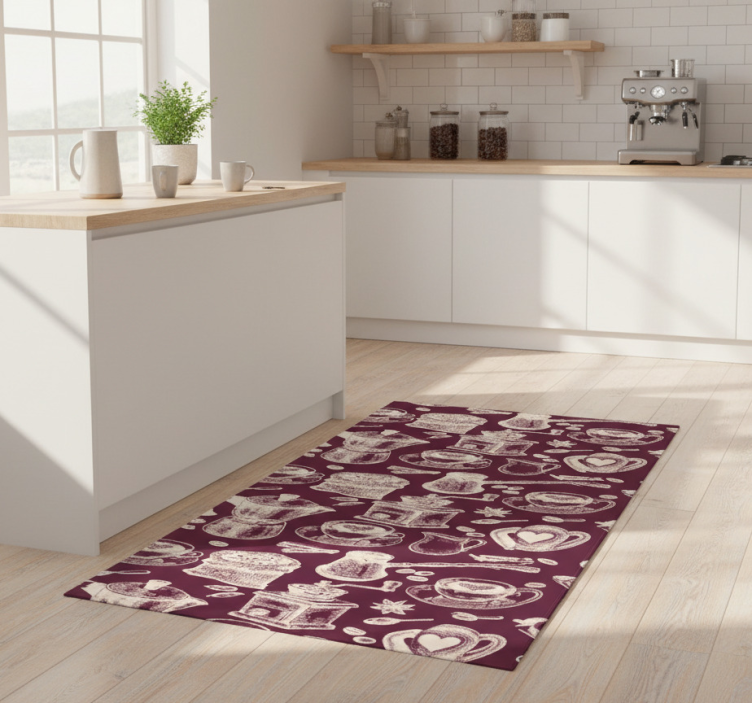The Kitchen vinyl rug with coffee pattern design kitchen vinyl rug is an excellent choice for enhancing the decor of your kitchen. Its charming design can effortlessly tie together your kitchen's theme, creating a harmonious atmosphere that invites family and friends to gather. With this rug, you can express your love for coffee while adding a functional element to your space. Let your kitchen reflect your personality and style!