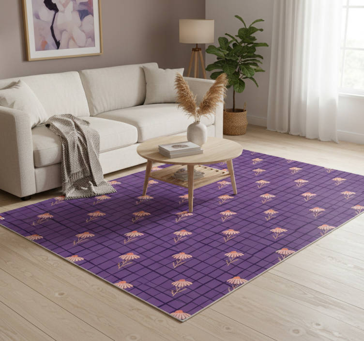 Purple floral motif flower vinyl rug