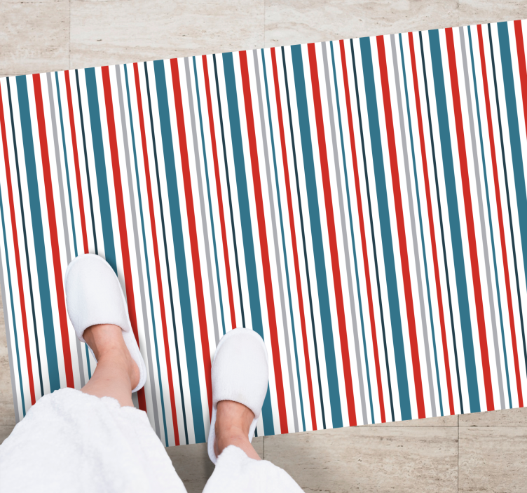 Transform your space with our Stripes vinyl rug in lively striped design. This stunning rug features a vibrant display of lines and stripes that create a bold and colorful pattern. Each stripy element comes together to form a visually appealing design that is sure to invigorate any room. Perfect for those who love a touch of fun in their decor, this striped masterpiece brings a lively atmosphere to your home!
