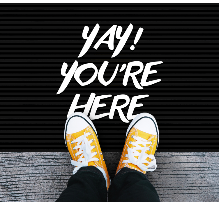 Make your guests smile when they see this cute entrance hall rug featuring an amazing design of black and grey lines and the text 'yay! You're here!'. Our floor carpets are perfect for both outdoor and indoor spaces and are incredibly easy to maintain!