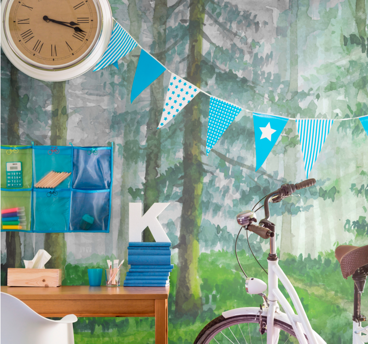 Transform your space with our Forest wall mural forest pathway detail, an exquisite design that captures the serene beauty of nature. This stunning painting features a Nordic illustration of towering trees lining a peaceful path, inviting you to immerse yourself in a lush green forest. The vibrant colors and intricate details bring the great outdoors into your home, creating a refreshing atmosphere that soothes the mind and elevates the spirit!