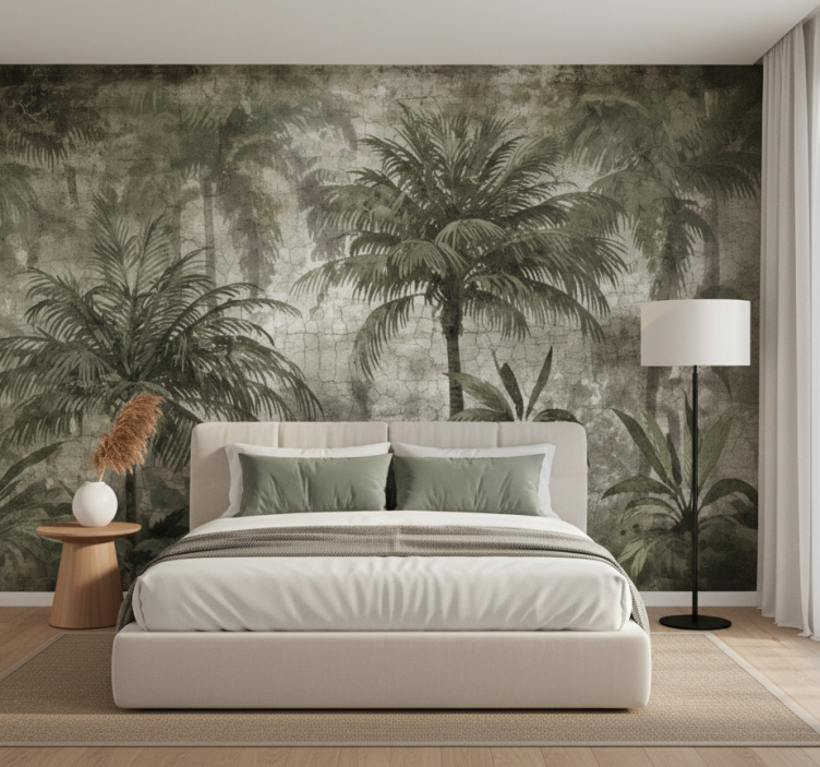 Reference: F11907Transform your space with our stunning Forest wall mural minimalist palm forest, a beautiful representation of tranquility and nature. This design captures the essence of a serene palm forest, combining matt colours with a soft aesthetic that invites calmness into any room. Crafted from non-woven wallpaper, it promises not only beauty but also durability, making it a perfect choice for those looking to enhance their home or office decor.