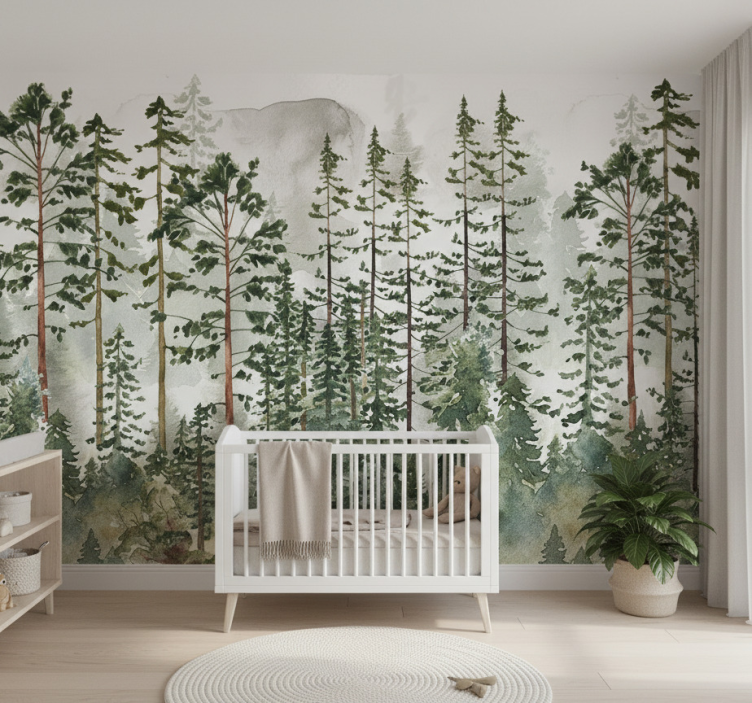 The Forest wall mural woodland nursery decor forest wall mural serves as a stunning backdrop that sparks imagination and wonder in your child's room. This mural invites nature's beauty indoors, fostering a sense of tranquility and connection to the great outdoors. Its charming visuals help create a comforting environment, making bedtime a delightful experience filled with dreams of woodland adventures!