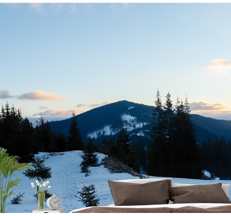 Transform your space with our stunning Mountain wall mural frosty summit landscape. This breathtaking design captures the essence of a winter wonderland, featuring majestic mountains blanketed in snow, surrounded by serene trees and a brilliant sky. Inspired by the enchanting landscapes of the Alps in France, this mural evokes a sense of calm and connection to nature, making it a perfect choice for any room!