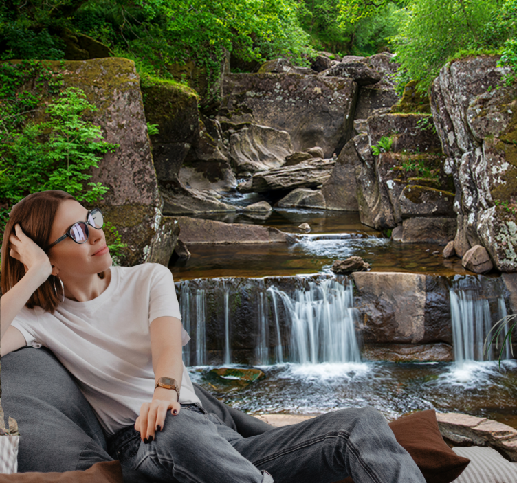 Transform your space with our stunning Mountain wall mural serene nature waterfall. This captivating design features a breathtaking waterfall cascading over rugged rocks, framed by a picturesque landscape filled with lush greenery. The harmonious blend of nature's beauty brings a sense of serenity and tranquility to any room, making it the perfect addition to your home decor.