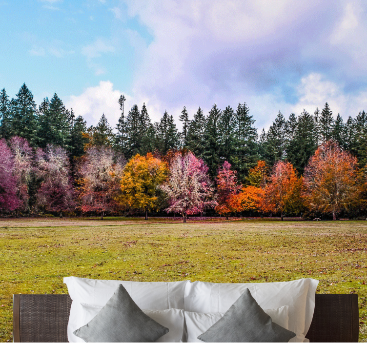 Transform your space with our stunning Nature wall mural colorful autumn forest, where vibrant trees and breathtaking landscapes come together to create a serene atmosphere. The design captures the essence of autumn, featuring a colorful array of foliage that brings the beauty of nature indoors. This mural invites you to immerse yourself in a lively forest scene, making it the perfect addition to any room.