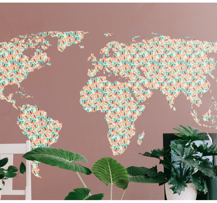 Transform your space with our stunning World map wall mural world map pattern. This exquisite design features an intricate illustration of a world map, adorned with delicate butterflies that flutter across the surface, creating an enchanting atmosphere. The combination of a world map and vibrant butterflies offers a unique visual experience that invites exploration and ignites the imagination!