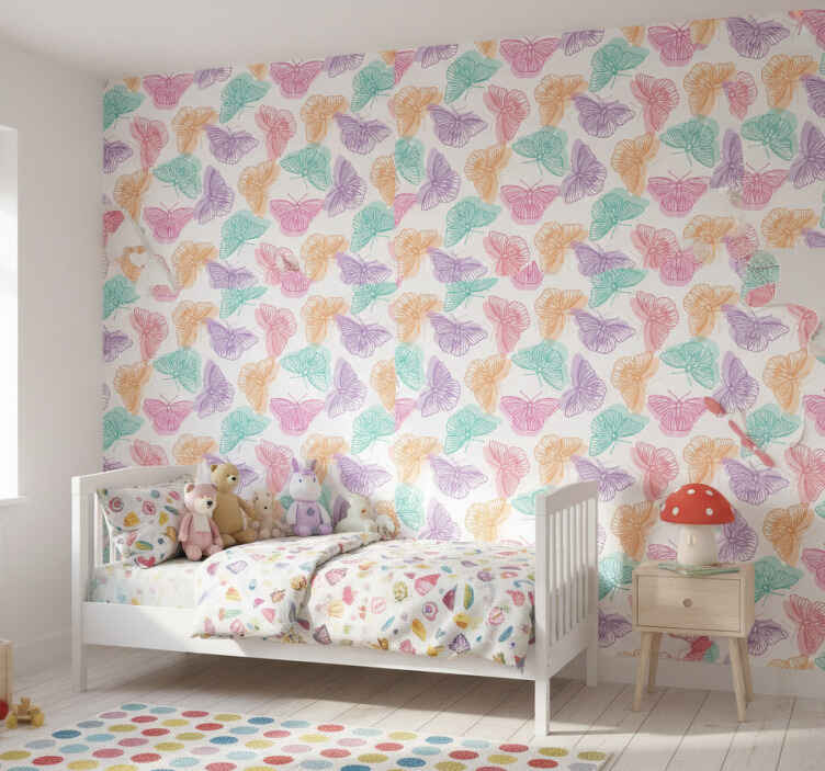 Applying our Colorful silhouette butterfly wallpaper is a breeze! Use glue to adhere it directly to your walls, employing a roller, a brush, and a cutter for precise application. This user-friendly wallpaper can be cleaned effortlessly with a damp cloth and a hint of neutral soap, ensuring it remains vibrant for years to come.