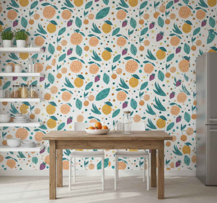 The Fruit flavours kitchen wallpaper kitchen wallpaper is the ideal choice for anyone looking to add a touch of whimsy and freshness to their kitchen. Its bright and cheerful fruit motifs inspire creativity and joy, making your culinary adventures even more enjoyable. Additionally, the long-lasting quality of this wallpaper ensures that your kitchen remains a delightful space for years to come!