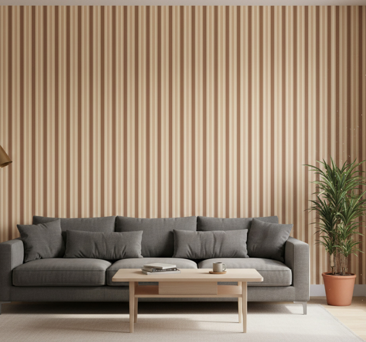 The Living room wallpaper in brown striped pattern living room wallpaper is not just an addition to your home; it’s a statement of style! This wallpaper inspires creativity and transforms your living space into a haven of comfort and elegance. Imagine hosting friends and family in a room that reflects your personality and taste, creating memories in an environment that feels both cozy and chic.