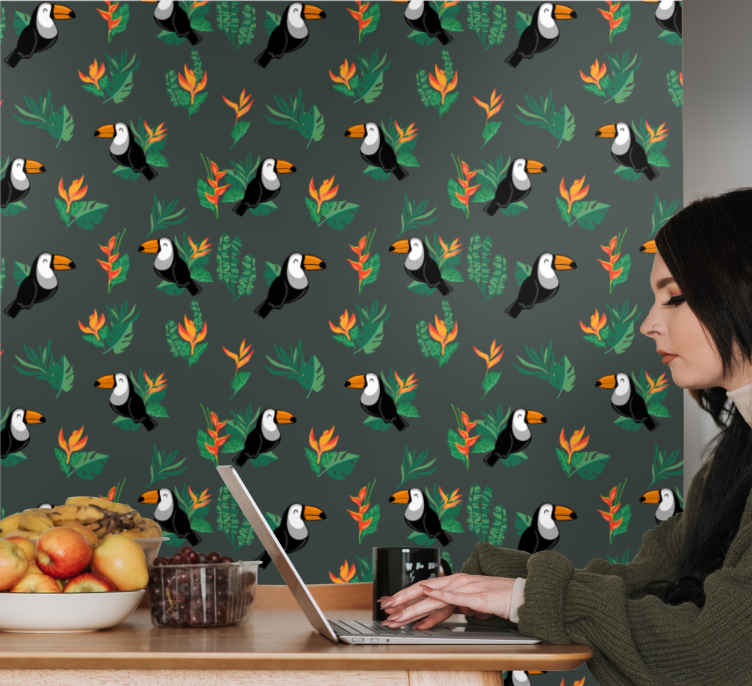 The Toucan Pattern birds wallpaper is the perfect choice for adding a pop of color and nature-inspired beauty to any room. Its vibrant toucan and tropical leaf design brings a sense of joy and liveliness to the space, creating a visually stunning focal point that is sure to impress. Whether you're looking to transform a bedroom, living room, or office, this wallpaper is a unique and stylish option that will infuse your space with tropical charm and avian elegance!